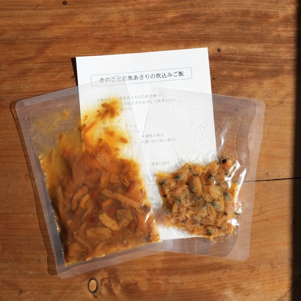 簡単に炊込みご飯を作れるセットにしました。